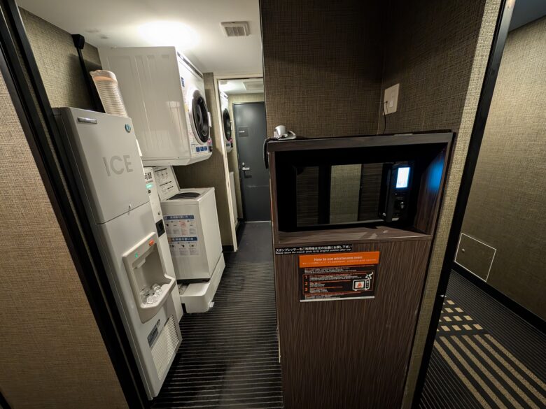 2階に電子レンジ製氷機、自販機・コインランドリーなどが揃っています。
