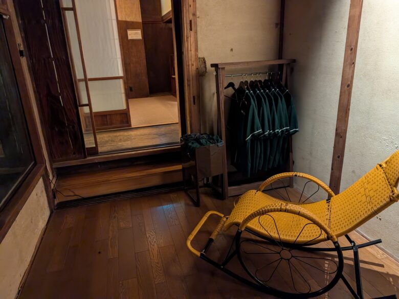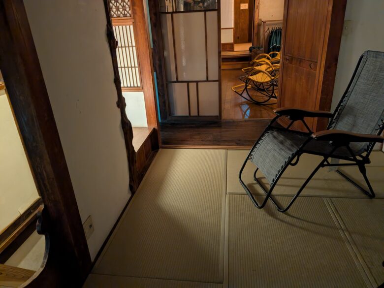 2階に行くと民家の畳スペースなどがあり、めちゃおもしろいです。ここで館内着に着替えてととのえます。