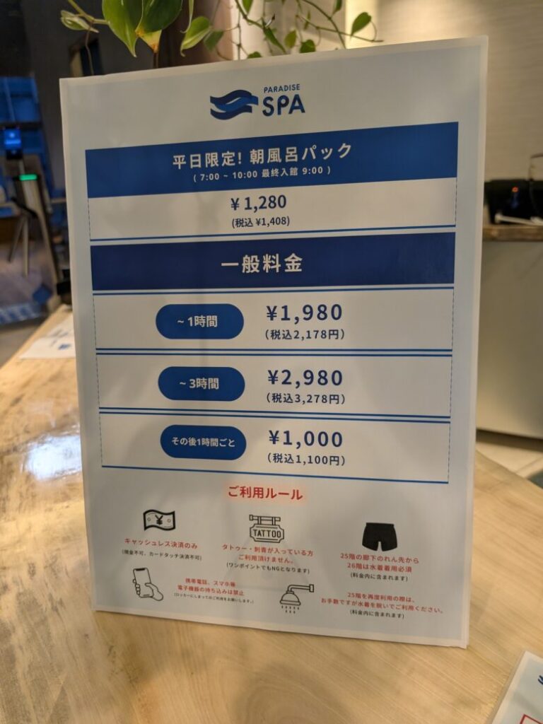 支払いは後払いでキャッシュレスのみです。1時間で1980円3時間だと2980円でそれを超えていくとプラス1000円かかります。