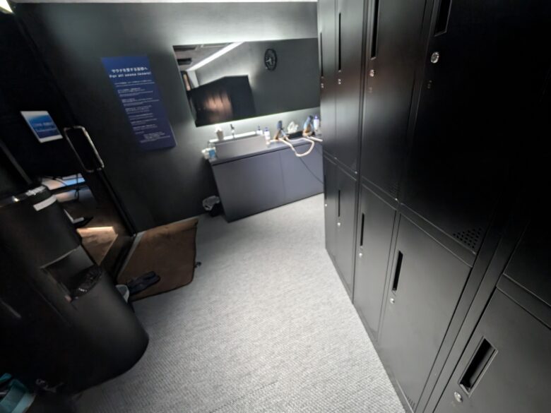 サウナ内はシャワーで風呂はなく最低限の大きさながら、深海をイメージしたととのい椅子で静かにととのうことができます。